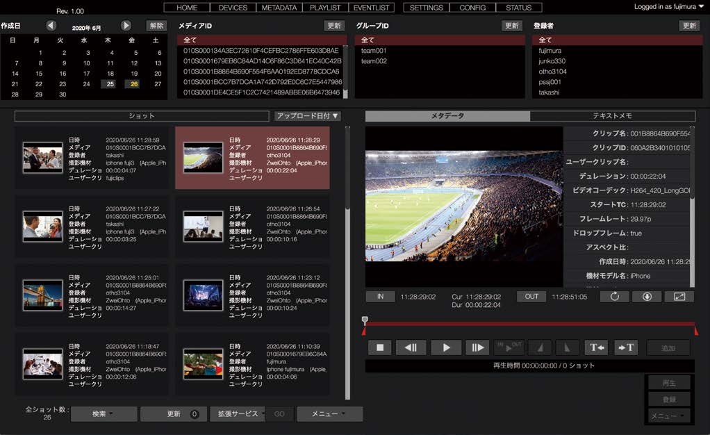 剪辑中可添加剪辑元数据(摄影师、位置、日期、时间、文本标记等) 。除了摄像机本身, 数据设置还可从SD卡、CX ROP app或云端上传。可在摄像机的LCD显示器上显示剪辑元数据列表。