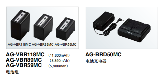 AG-VBR118MC | 7.28V 11800mAh 86Wh | 约4小时40分钟 | 约6 小时40 分钟 |