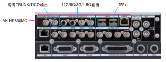 该摄像机支持4K时代所需的非压缩12G-SDI 输出。此外,还使用了TICO*2的光压缩技术,通过3G-SDI发送4K视频且不影响视频质量,从而允许使用目前的高清基础设施进行4K视频传输。可配备IP/12G/3G 接口组件AK-NP600MC(可选配件),支持SMPTE ST2110*3 。