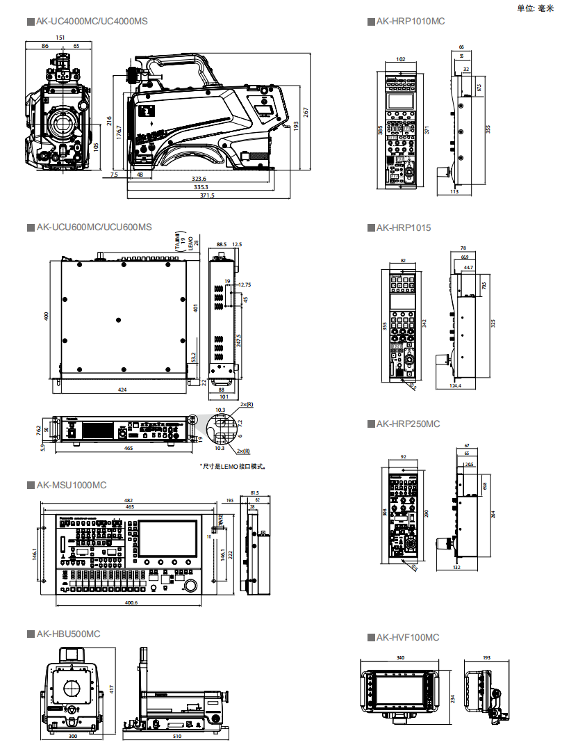 · 三种型号:1/4机架尺寸(AK-HRP1010MC)、1/5机架尺寸(AK-HRP1015)和1/4机架尺寸(AK-HRP250MC)。