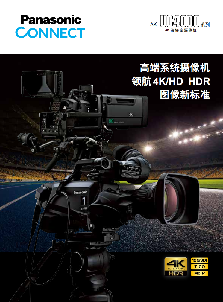 搭载4K大型传感器,摄像机可拍摄出高画质视频的同时,还可实现HDR(HLG)、BT.2020及高清视频高速拍摄*1 。摄像机控制单元具备多样化输出接口,包括 12G-SDI, TICO *2 或SDI(4K或 3G-SDI)输出,MoIP *3 ,AK-UC4000MC/MS摄像机不仅适用于演播室制作更可广泛应用于其它方面, 如: 体育实况以及演出活动。卓越的图像质量和适配性强的系统应用,使摄像机完全满足4K时代的高质量制作需求。
