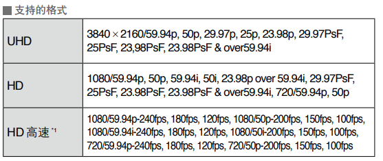 · 支持的格式:1080/59.94p, 50p, 59.94i, 50i, 720/59.94p, 50p